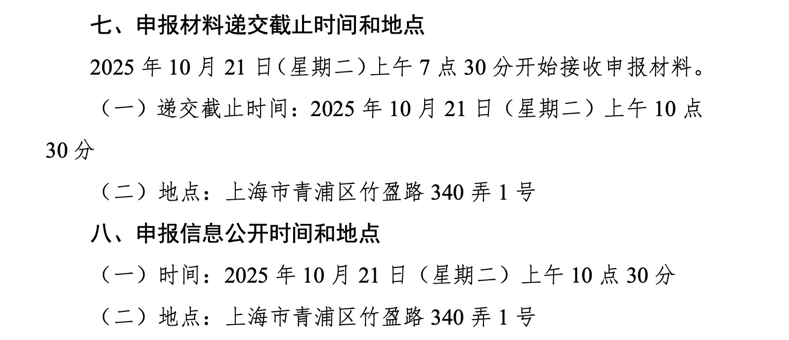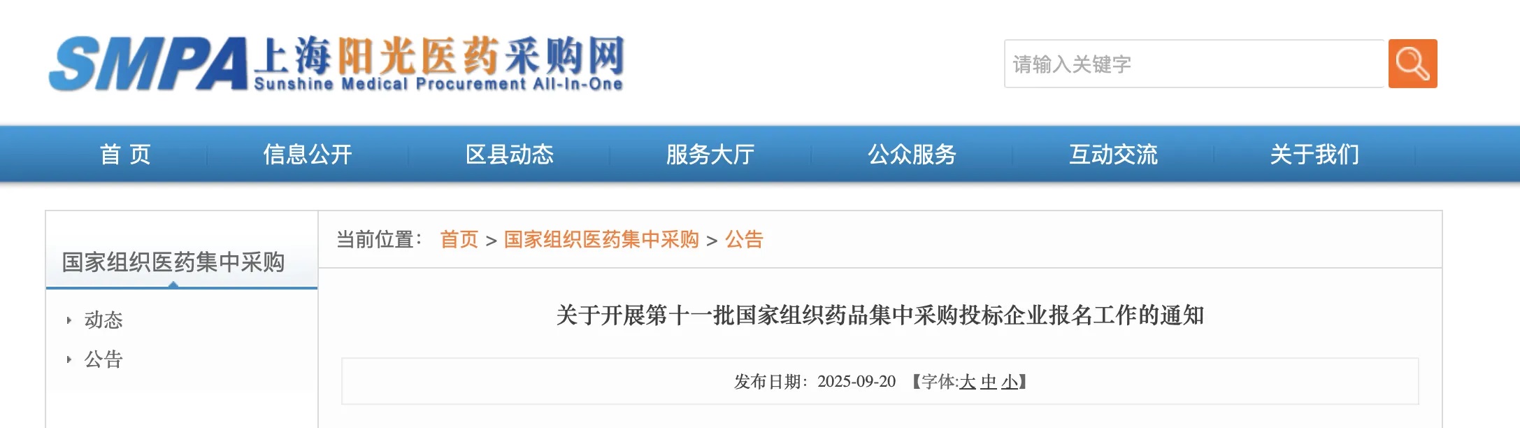 第十一批國采自10月21日(星期二)上午7點30分開始接收申報材料,遞交截止時間為當日上午10點30分,地點為上海市青浦區(qū)竹盈路340弄1號;申報時間和地點同上。