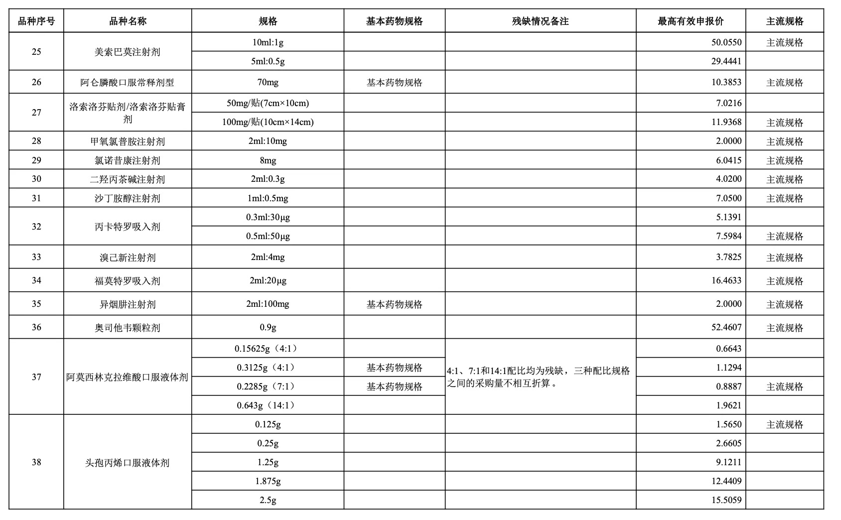 2、低價兜底。按劑型劃分的低價門檻達標,口服固體制劑(含泡騰片)“單位可比價”≤0.1元、小容量注射劑≤1元、大容量注射液≤2元。