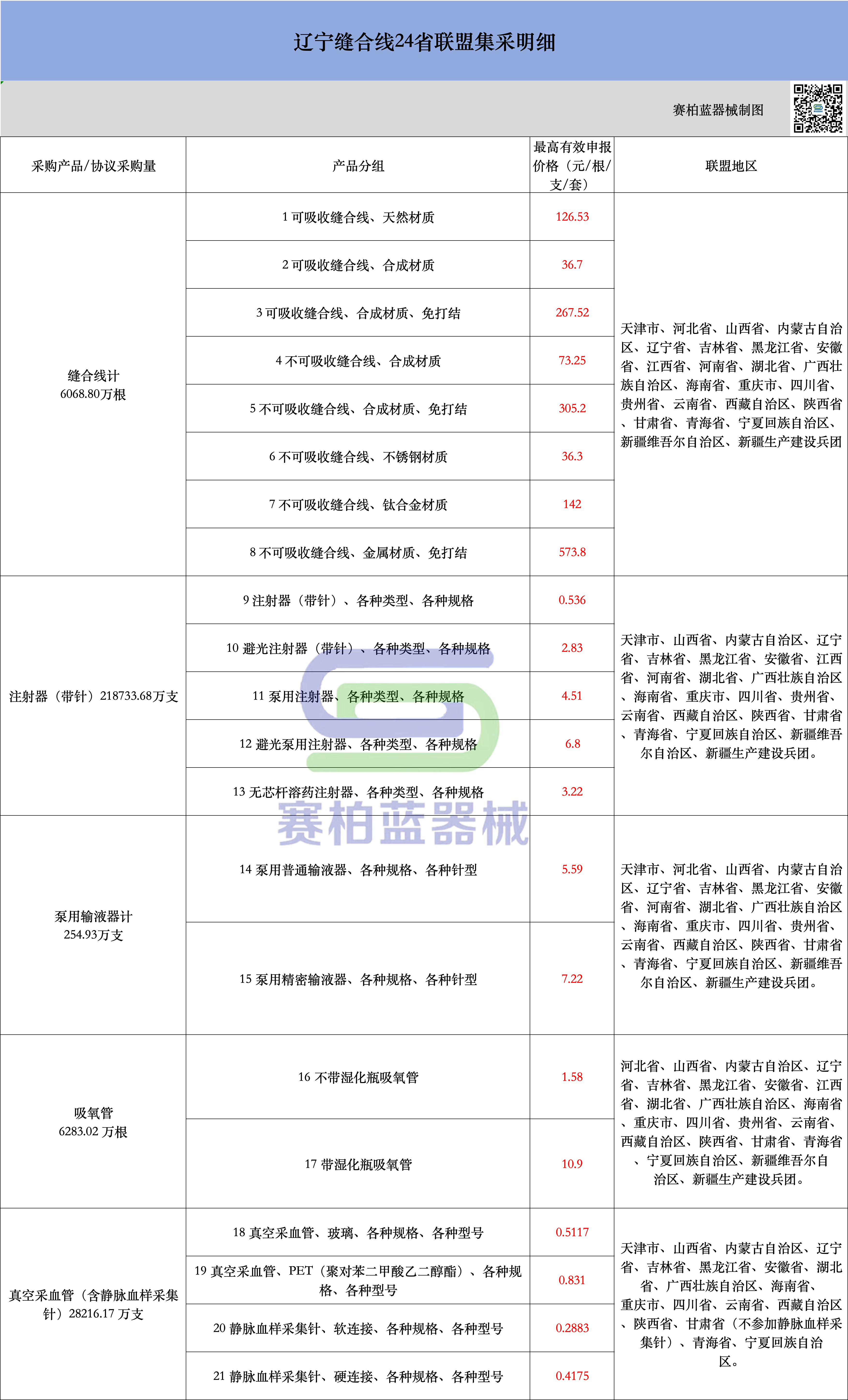 此次集采由遼寧牽頭,天津、河北、山西、內(nèi)蒙古、吉林、黑龍江、安徽、江西、河南、湖北、廣西、海南、重慶、四川、貴州、云南、西藏、陜西、甘肅、青海、寧夏、新疆、新疆生產(chǎn)建設(shè)兵團組成24省(市、區(qū)、兵團)采購聯(lián)盟。采購周期為3年。