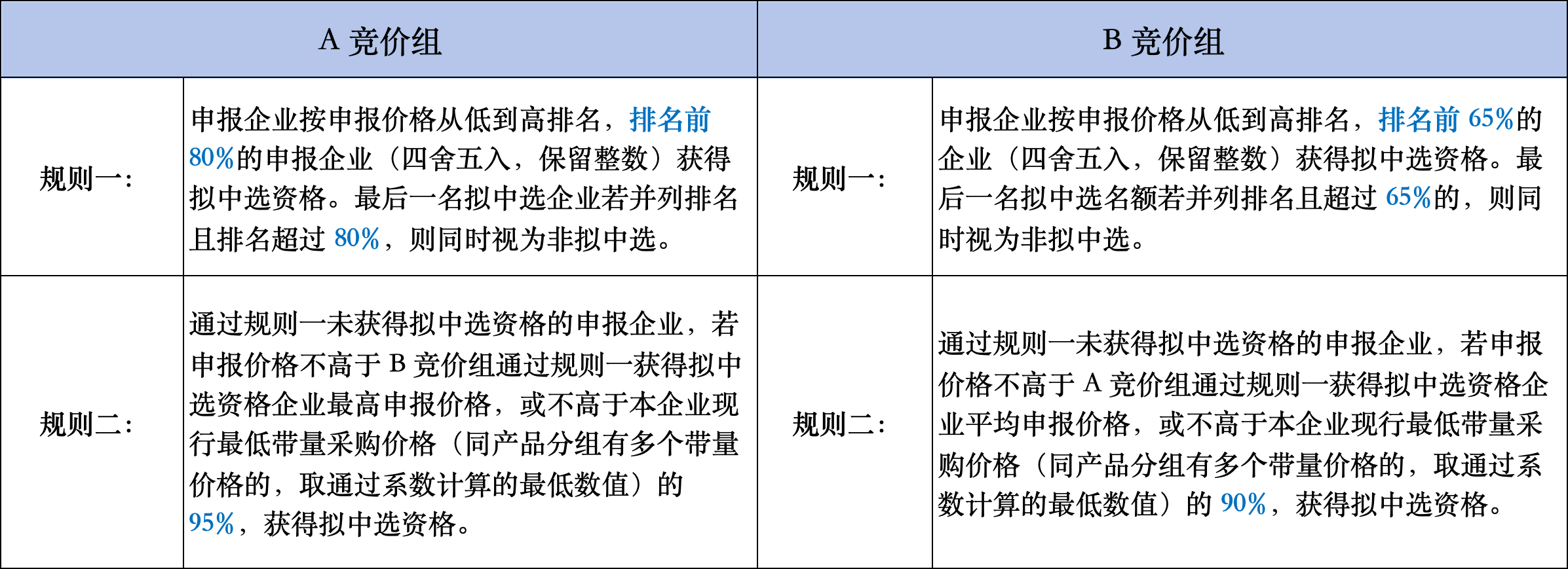 此次共設(shè)置4個擬中選規(guī)則,其中規(guī)則一、二為中選規(guī)則。同一產(chǎn)品組中,若申報企業(yè)擬中選,則申報企業(yè)在該產(chǎn)品分組的所有產(chǎn)品均為擬中選。具體如下: