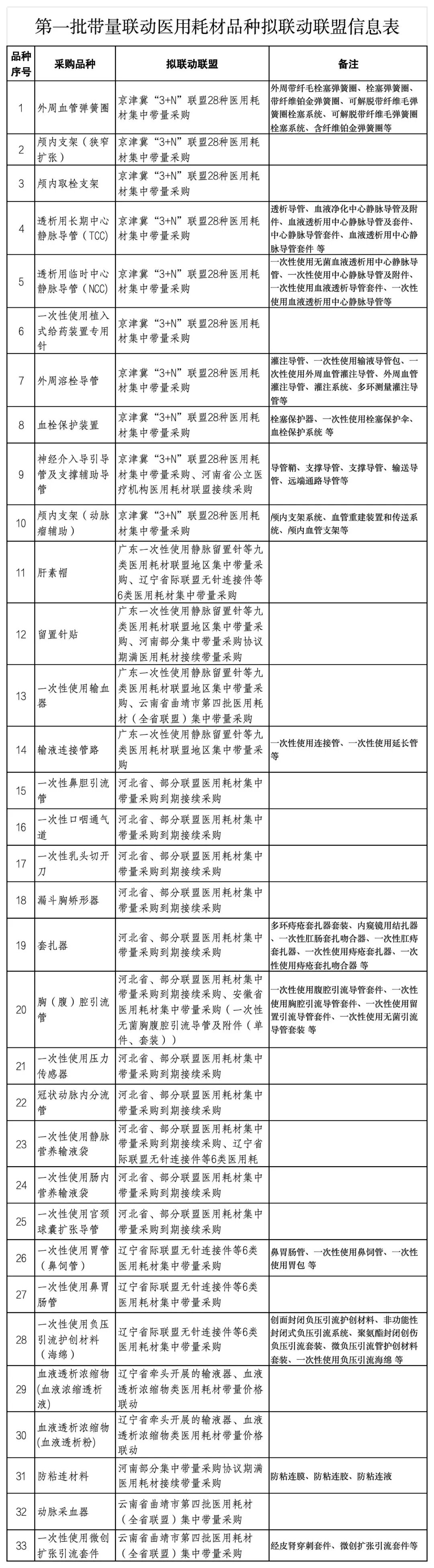 對比此前發(fā)布的征求意見稿,首批聯(lián)動(dòng)耗材由49類減少到33類。